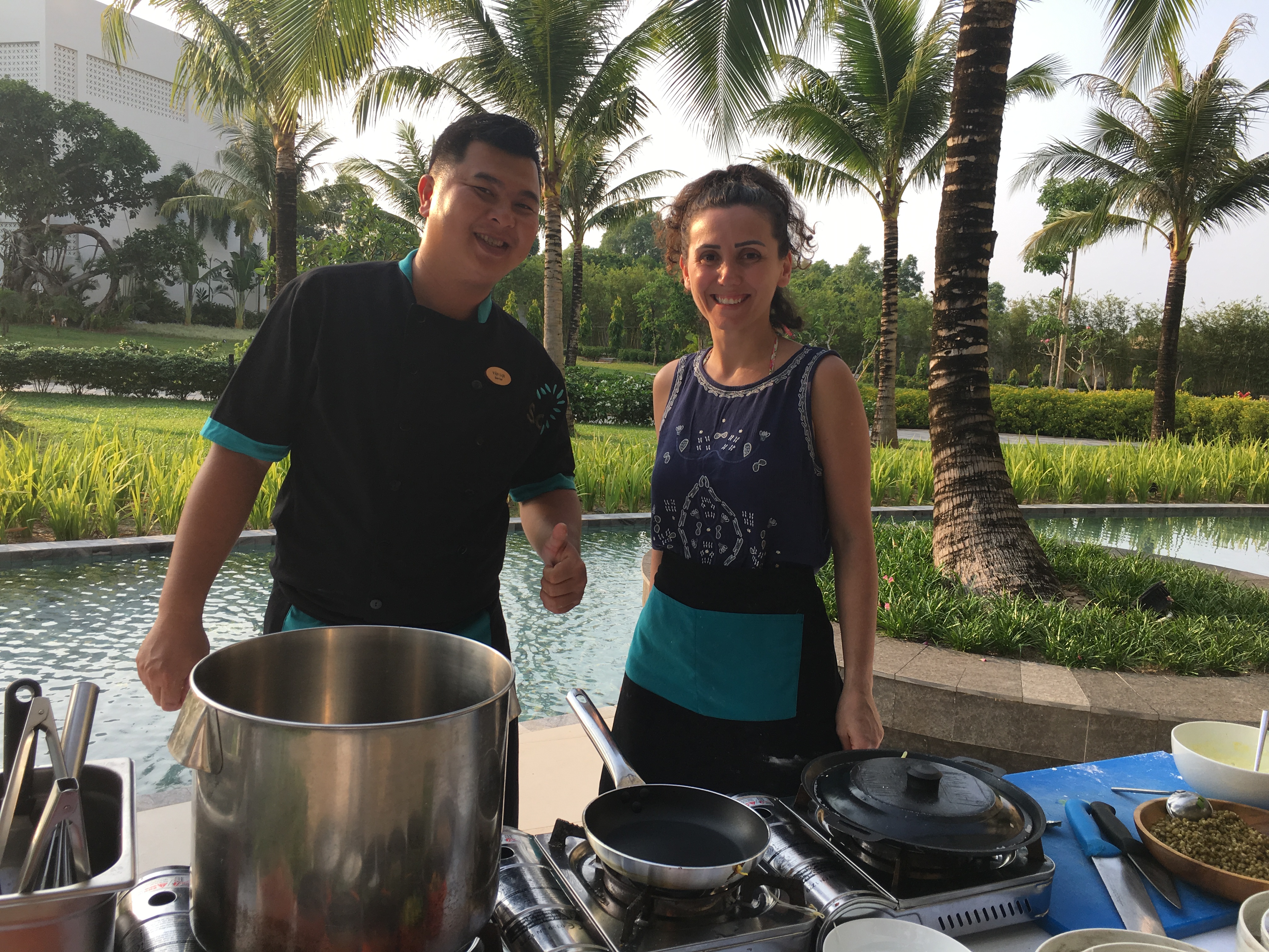 Sahili şahaneydi… Havuzlar şahaneydi… İlk gün sürekli su yuttuğu için karnı ağrıyan Can’ı biraz sıcak havlu koysunlar diye alıp SPA’ya götüren babamız şahaneydi (her gün sabah akşam karnım ağrıyor diye SPA’yı doktor sanıp kendi kendine gidip, karnına sıcak havlu, sıcak taş masajı yaptıran Can en şahaneydi), havuz başında bile laptopunu kapatmayan İlker şahaneydi… Bana otelin mutfak şefiyle yarım gün Vietnam yemeklerini öğrenme şansı tanıyan otel şahaneydi… Nutellalı buzdan el yapımı dondurmaya bayılan Zeynep şahaneydi… Hergün 2 saat masaj şahaneydi… İlk gün havuzda tanışıp çocukların birbiriyle İngilizce konuştuğu, ikinci gün birbirimizin Türk olduğunu anladığımız Almanya’da yaşayan Mesut-Eda-Nisa ailesi şahaneydi…